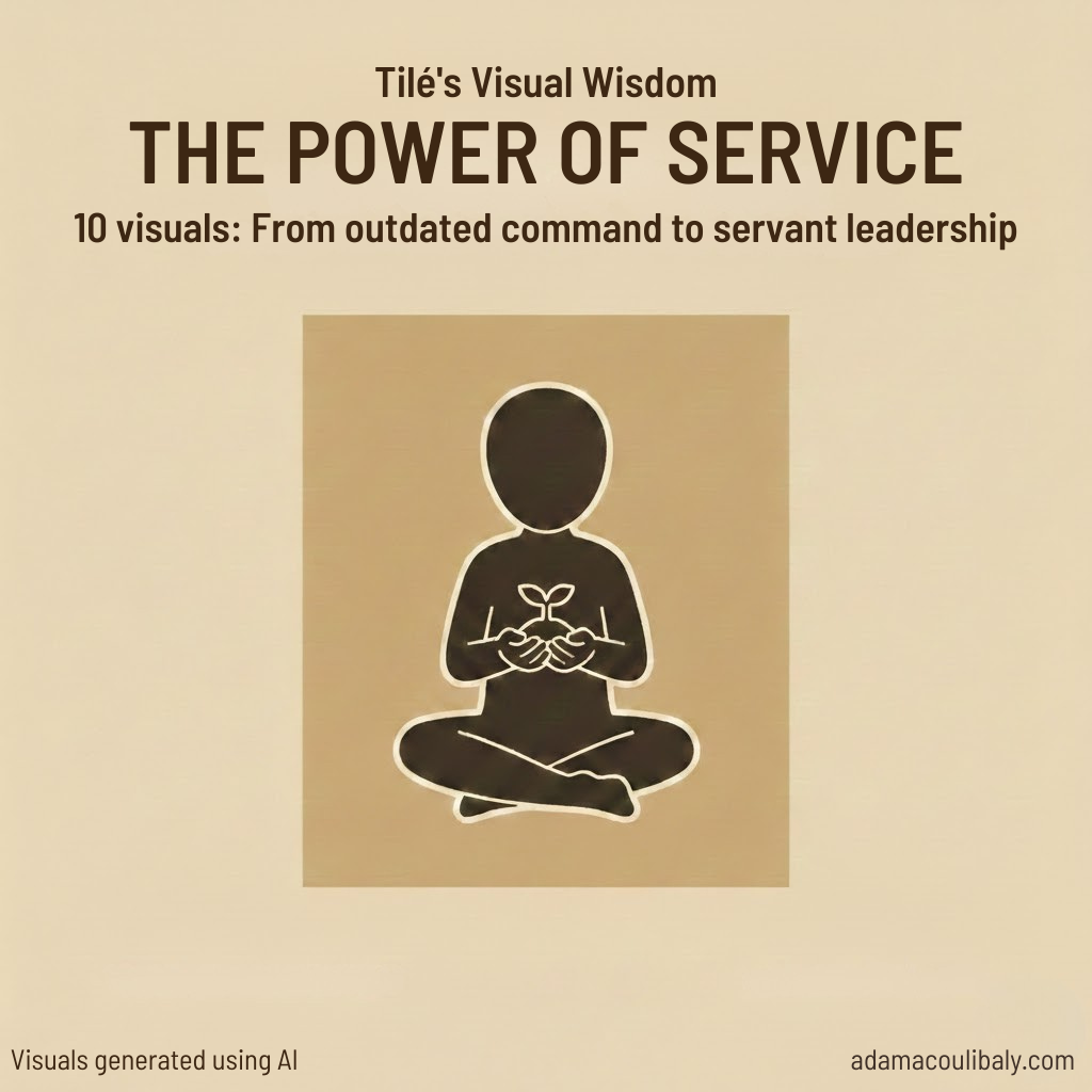 This visual series captures the profound internal and systemic shift required to move away from hierarchical control toward a culture of service. Through Tilé’s observations, we navigate the three phases of this transition: softening the Mindset & Ego to trade heroism for humility; deepening Action & Connection by building bridges rather than climbing alone; and reimagining Vision & Legacy, where the leader’s success is measured by the growth of others.