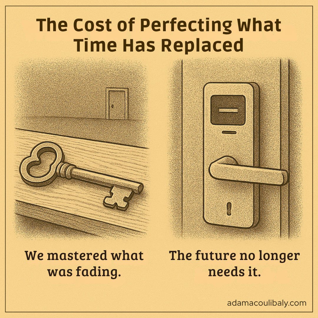 The hands remember every movement, the mind every method, but the context shifts beneath them. What was once mastery becomes memory, a beautiful skill in search of a vanished purpose. The danger is not in being skilled, but in being slow to notice that the key no longer fits the lock.